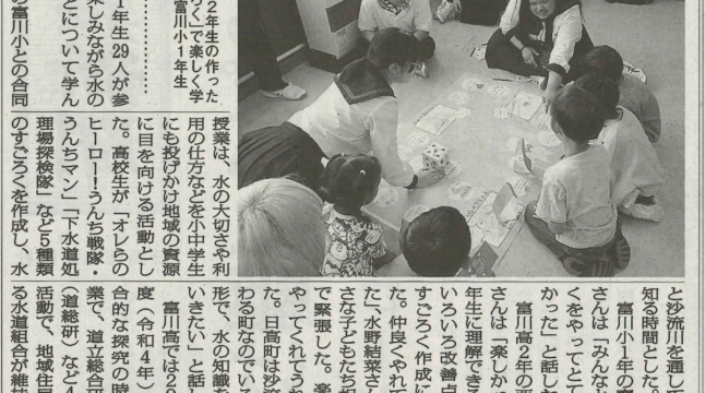 10月9日の日高報知新聞に富川高校と富川小学校の合同授業の記事が掲載されました ...